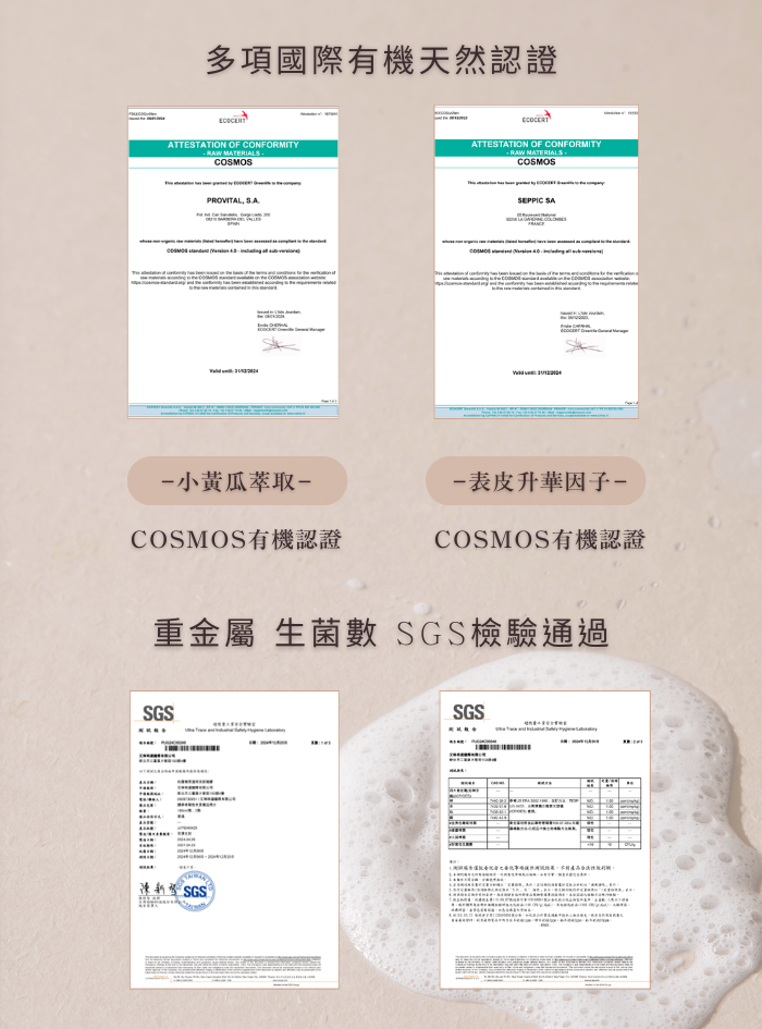 全產品亦通過 SGS 重金屬、生菌數檢驗