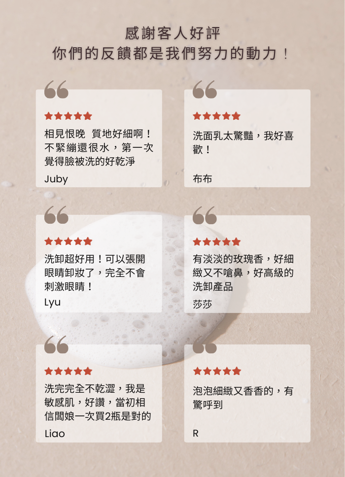 • 洗後不乾澀:保水成分留在肌膚表面,洗後依然水潤柔嫩