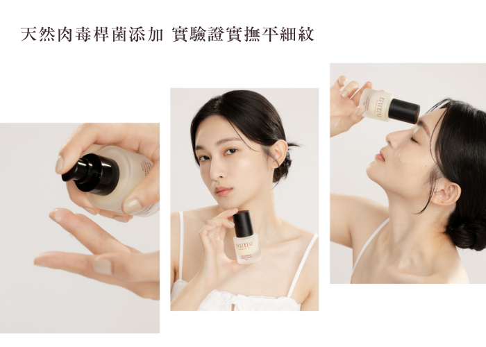 • 天然肉毒桿菌植萃,實驗實證有效淡化細紋,肌膚重返澎潤