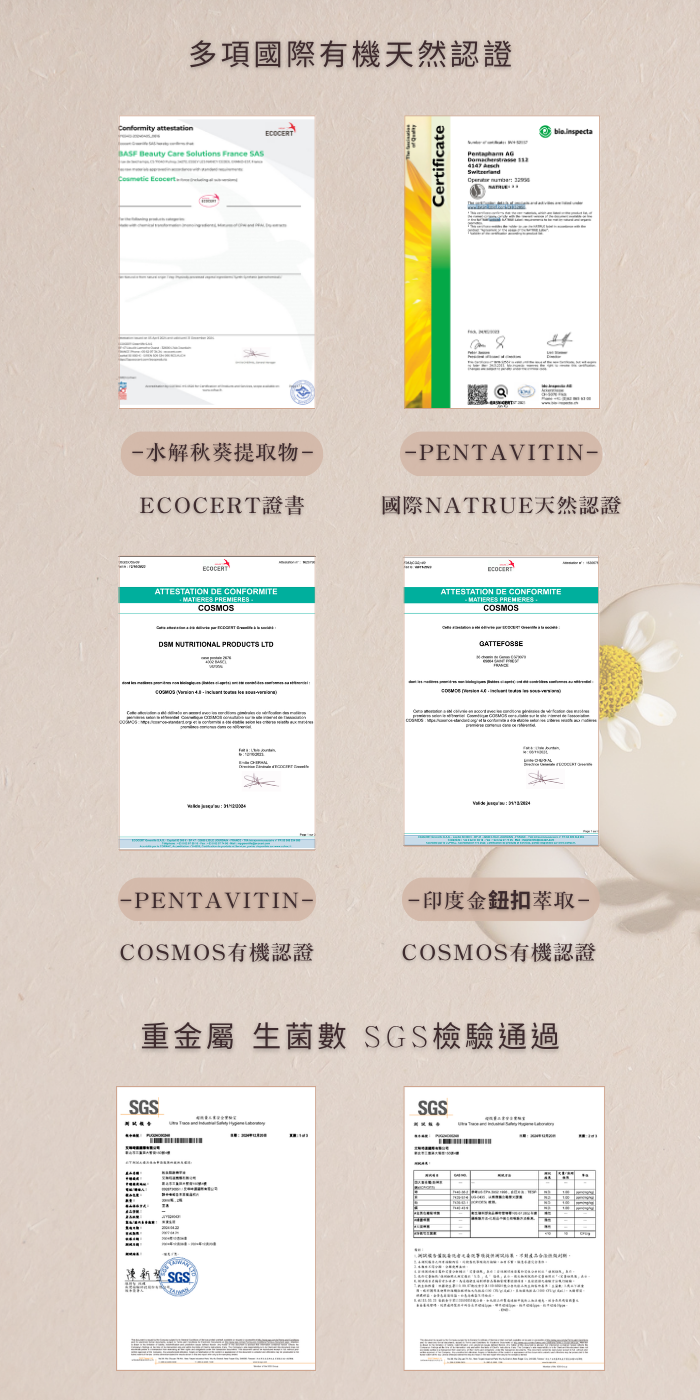 全產品亦通過 SGS 重金屬、生菌數檢驗