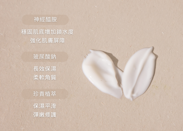 搭配神經醯胺、玻尿酸鈉及珍貴植萃成分
