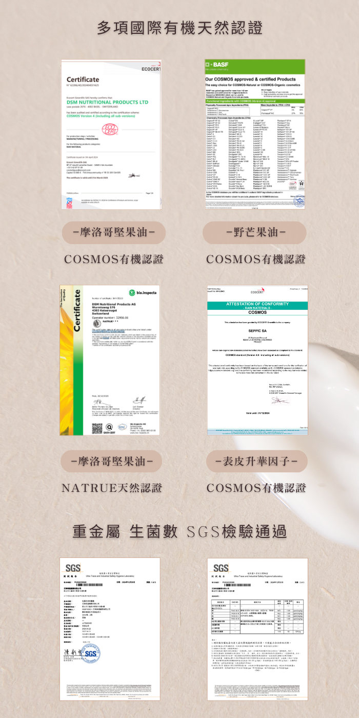 全產品亦通過 SGS 重金屬、生菌數檢驗
